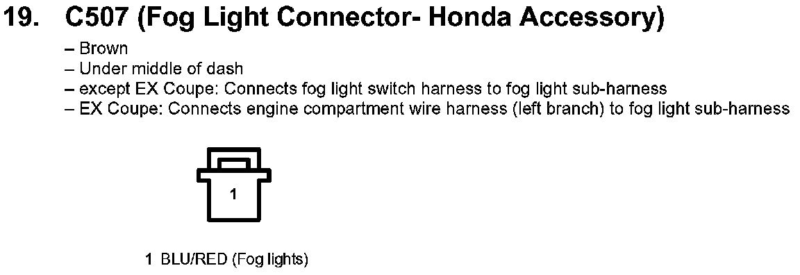 19. C507 (Fog Light Connector-Honda Accessory):