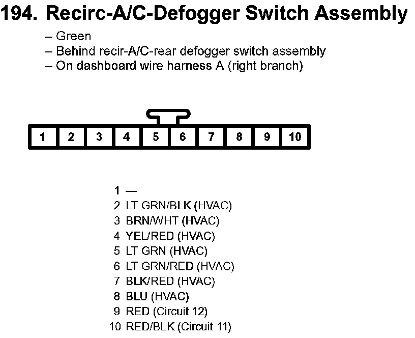 194. Recirc - A/C - Defogger Switch Assembly: