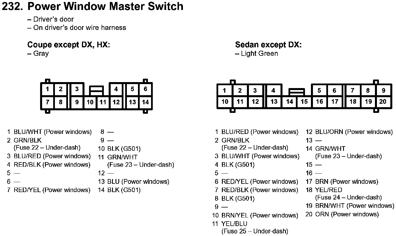 168. Power Window Switch, Left Rear Or Right Rear (Sedan Except DX):