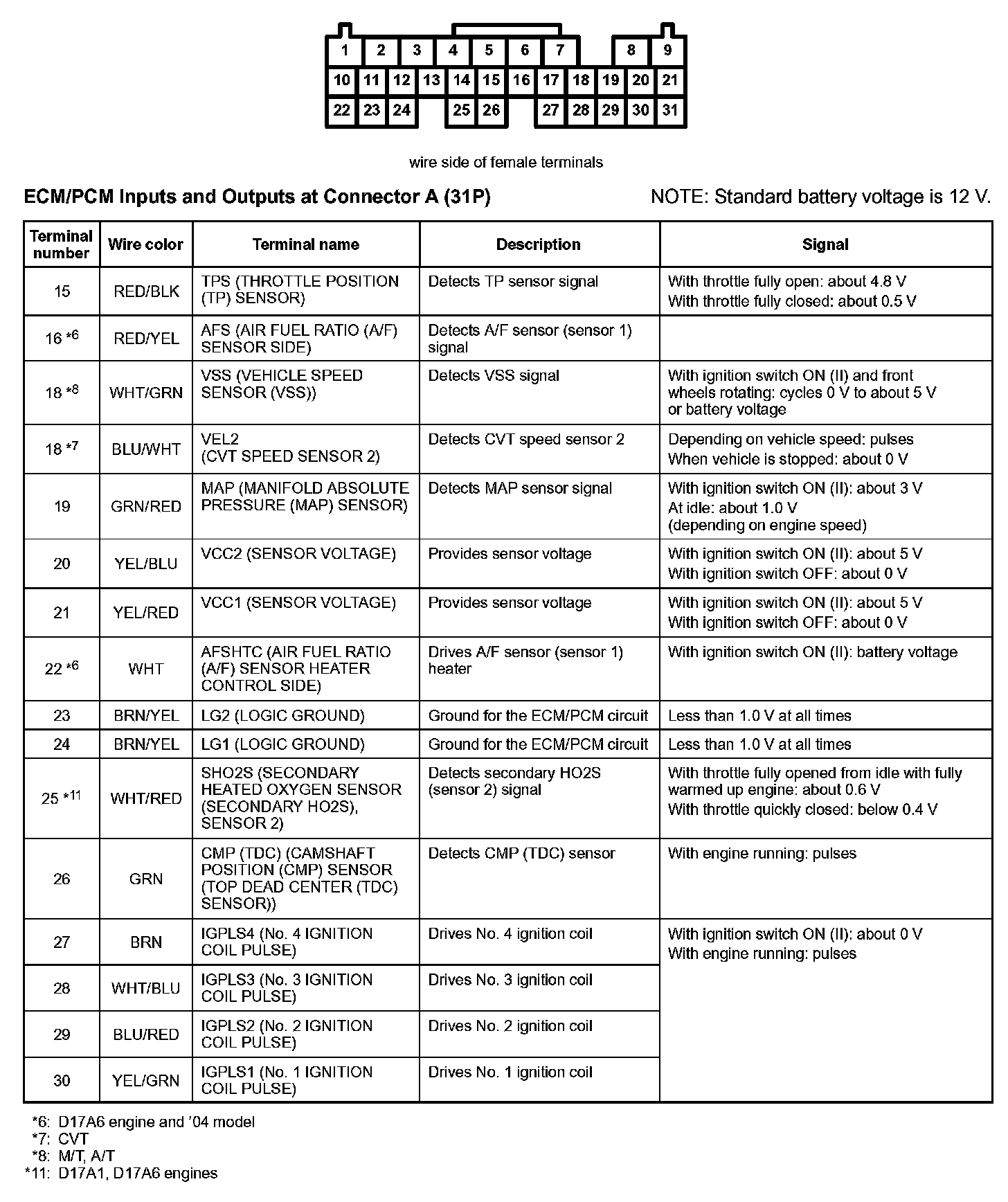 ECM/PCM Inputs And Outputs At Connector A (31P):