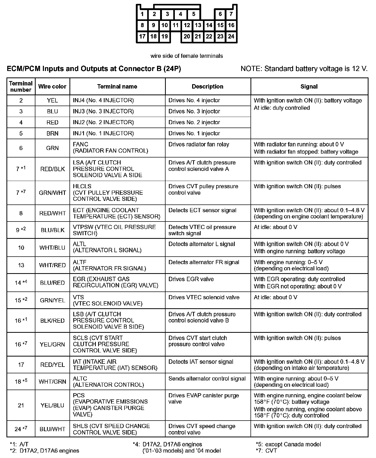 ECM/PCM Inputs And Outputs At Connector B (24P):