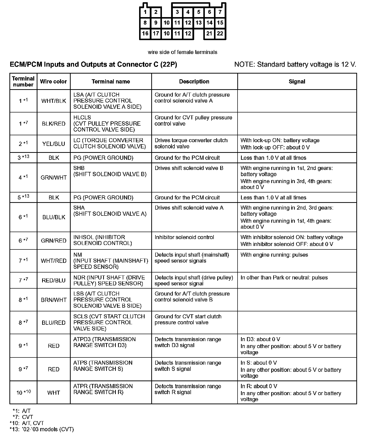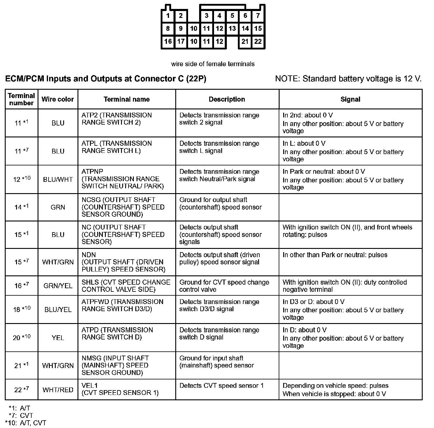 ECM/PCM Inputs And Outputs At Connector C (22P):