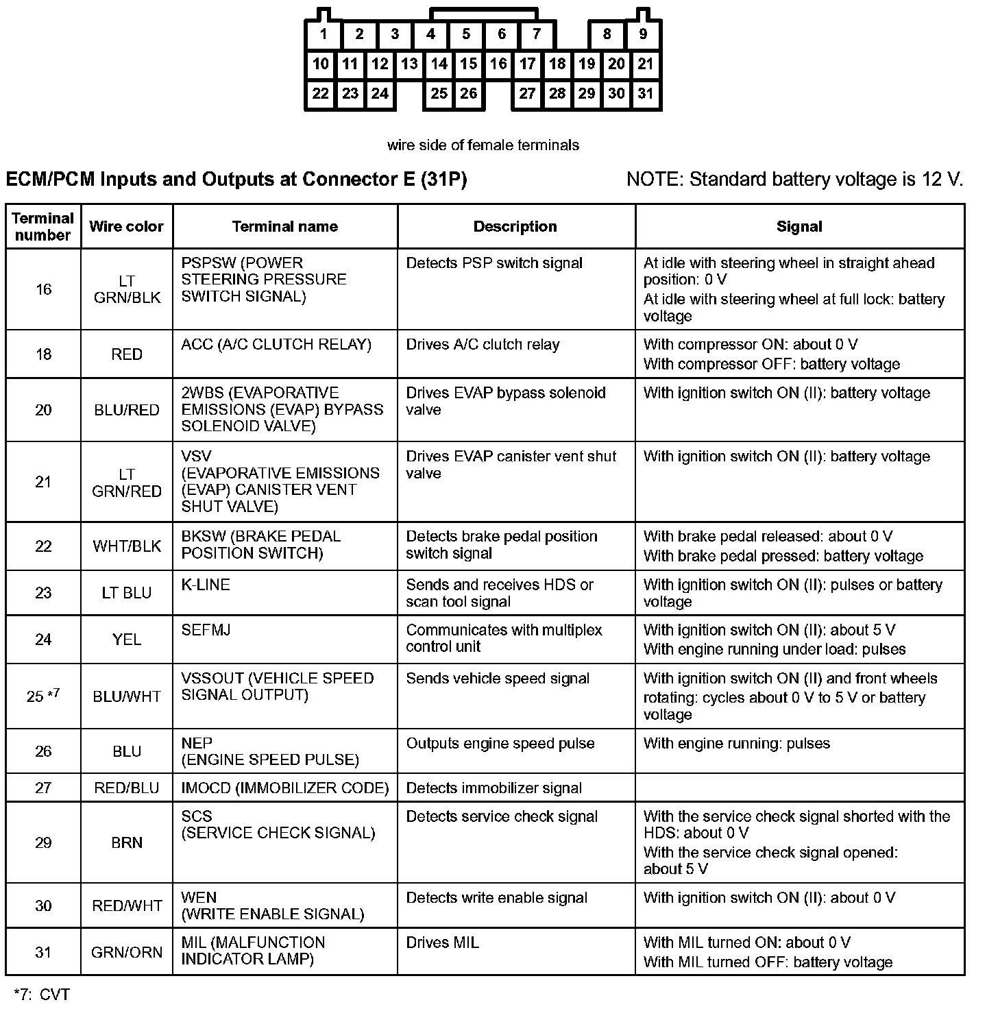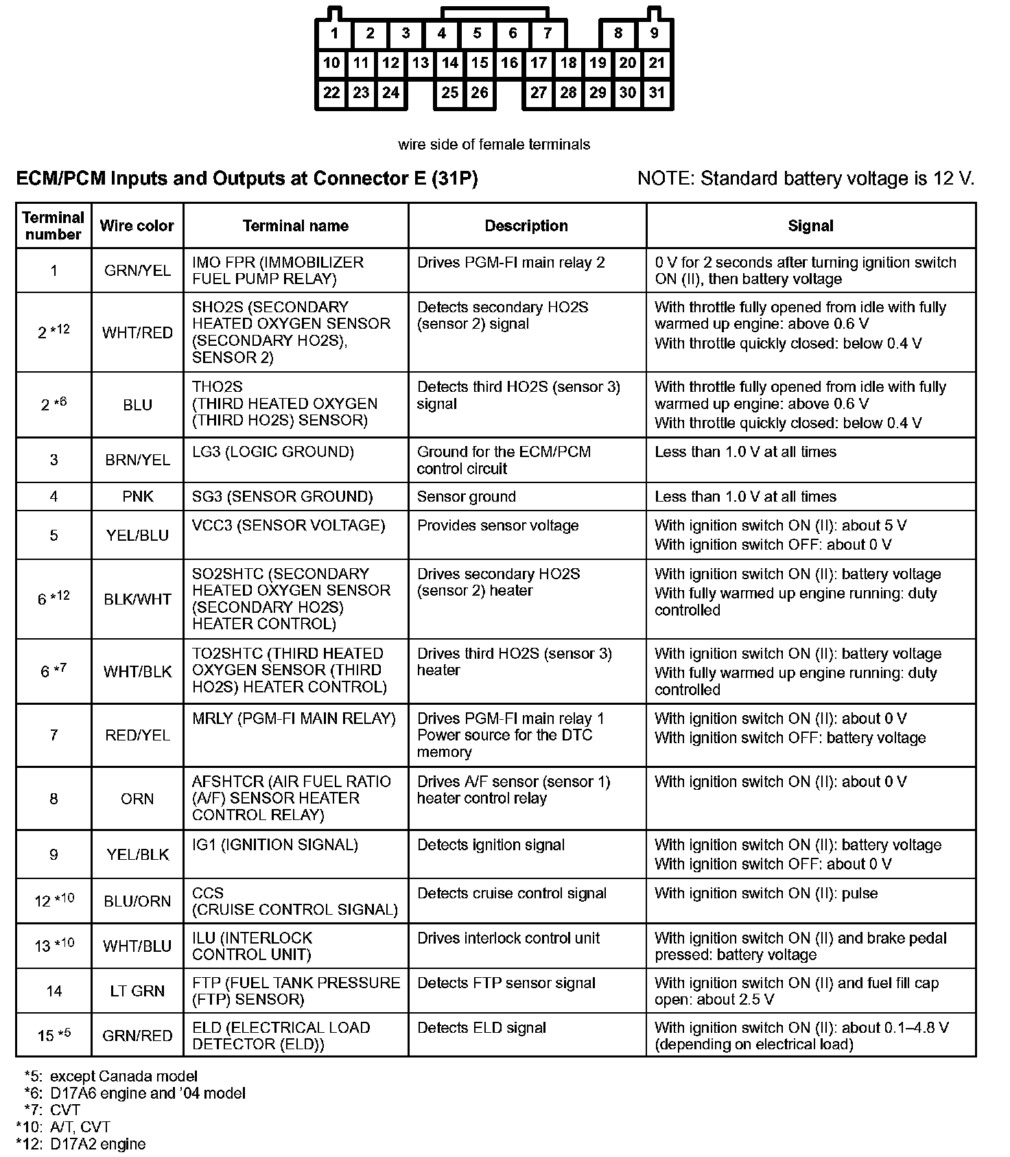 ECM/PCM Inputs And Outputs At Connector E (31P):