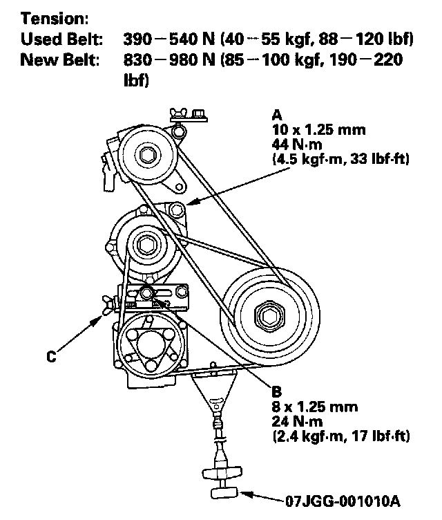 Alternator / A/C Belt Inspection and AdjustmentSpecial Tools Required