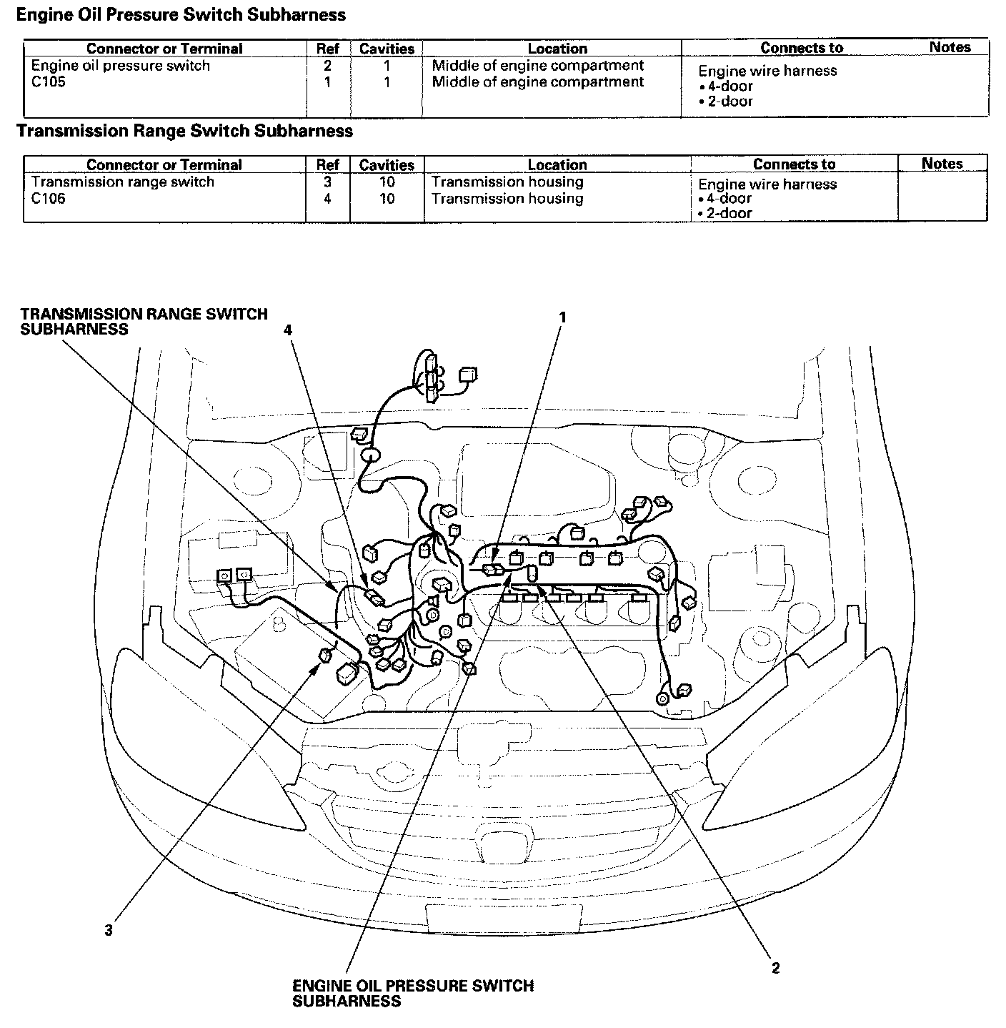 Engine Oil Pressure Switch Subharness/Transmission Range Switch Subharness: