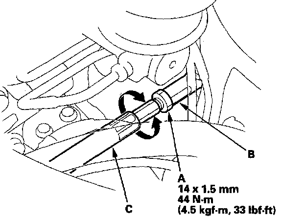 NOTICE: Do not loosen the special bolts (C) on the lower arm to adjust the alignment.