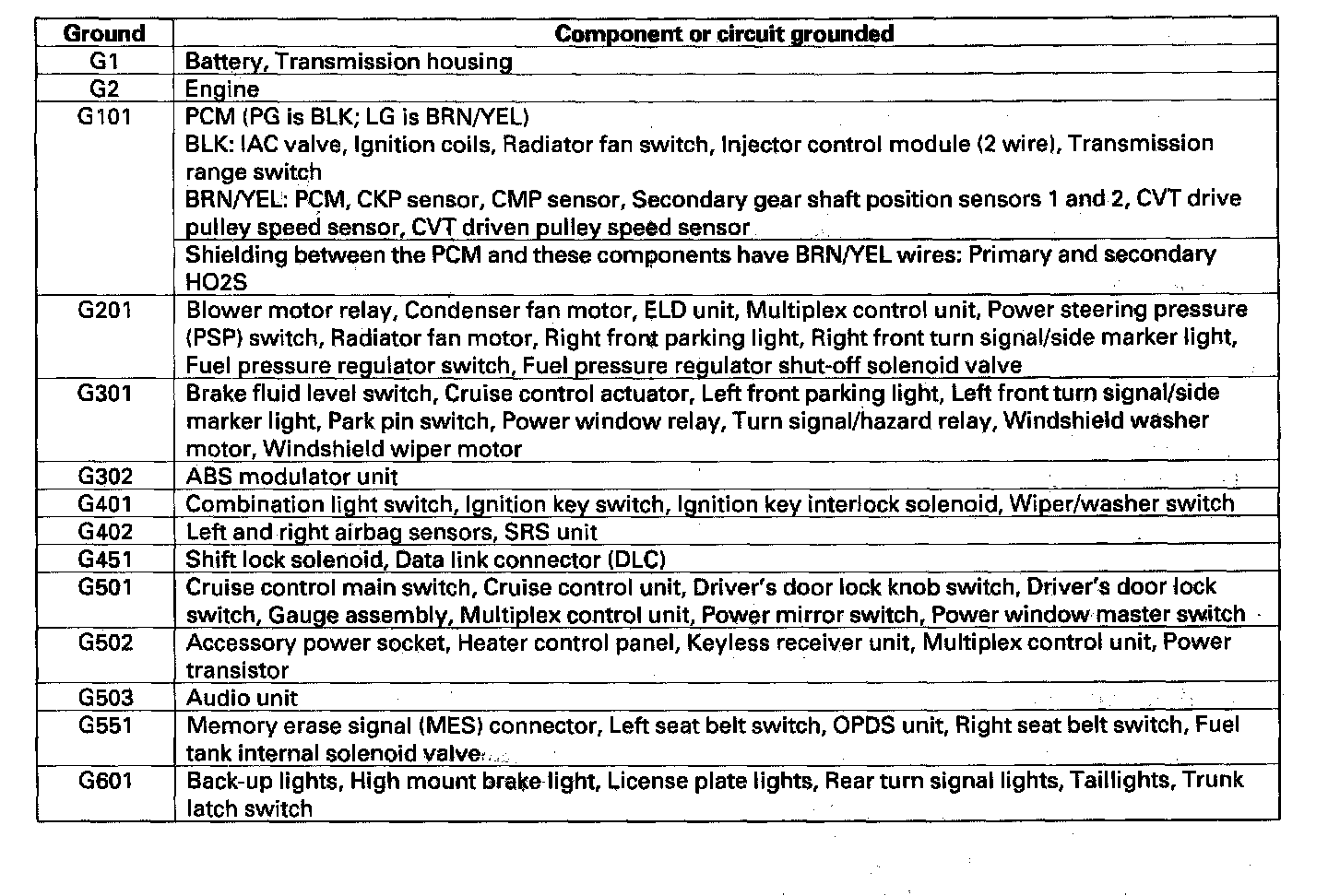 Ground To Component Index: