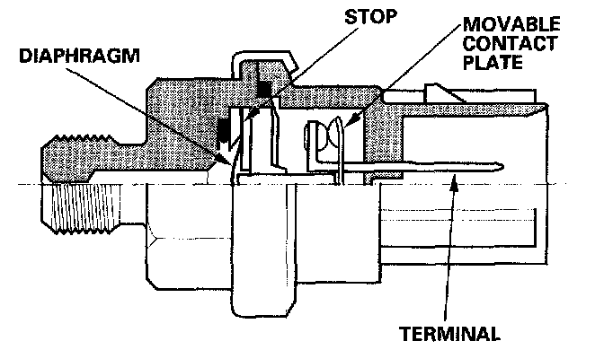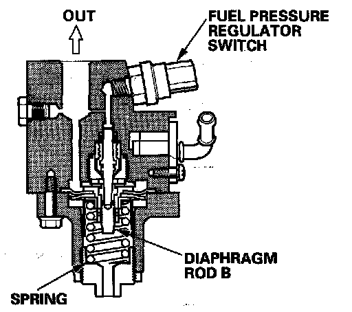The fuel pressure regulator switch is located on fuel pressure regulator P1. It detects excessive fuel pressure.