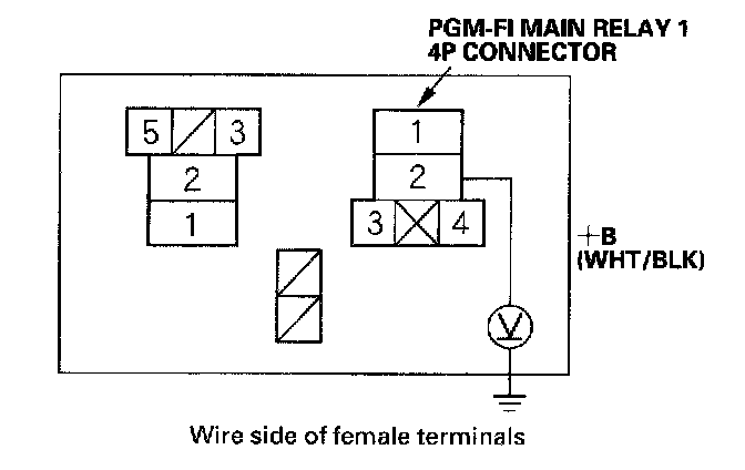 19. Disconnect each of the component or the connector sensors below, one at a time, and check for continuity between PGM-FI main relay 1 4P connector terminal No.1 and body ground.