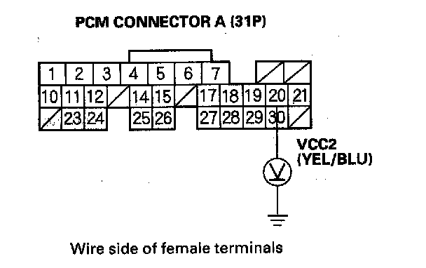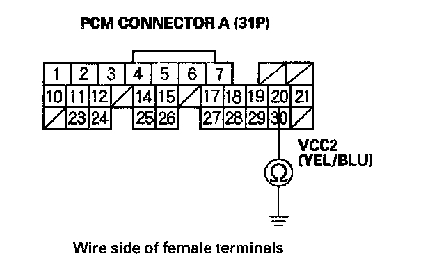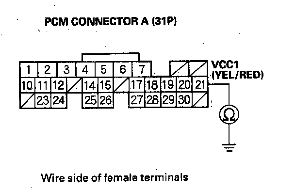 NO - Repair open in the wire between PGM-FI main relay 1 and the PCM (A2, A3).