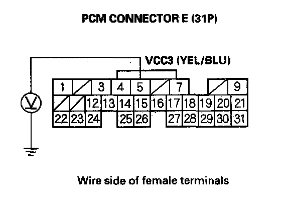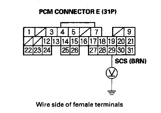 79. Measure voltage between PCM connector terminal E29 and body ground.