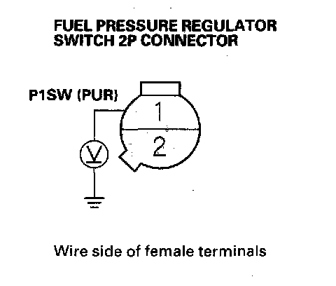 7. Measure voltage between fuel pressure regulator switch 2P connector terminal No. 1 and body ground.