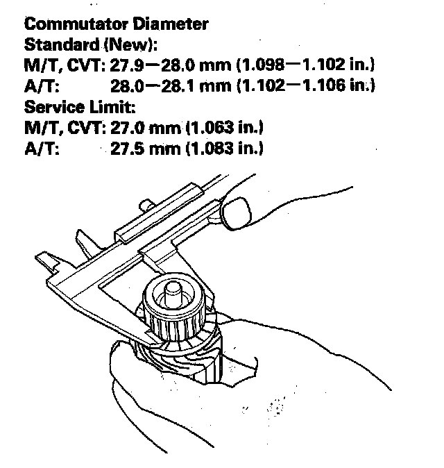 5. Check the commutator diameter. If the diameter is out of the service limit, replace the armature.