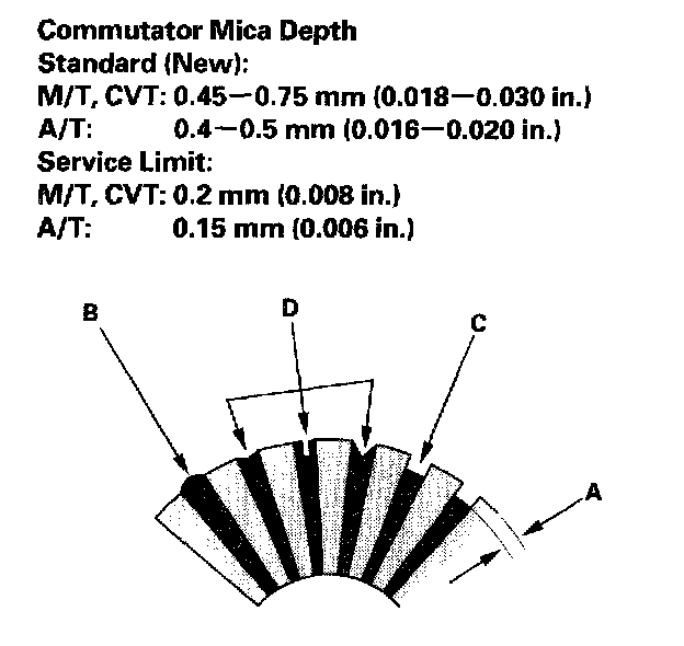 - If the commutator runout is within the service limit, check the commutator for carbon dust or brass chips between the segments.