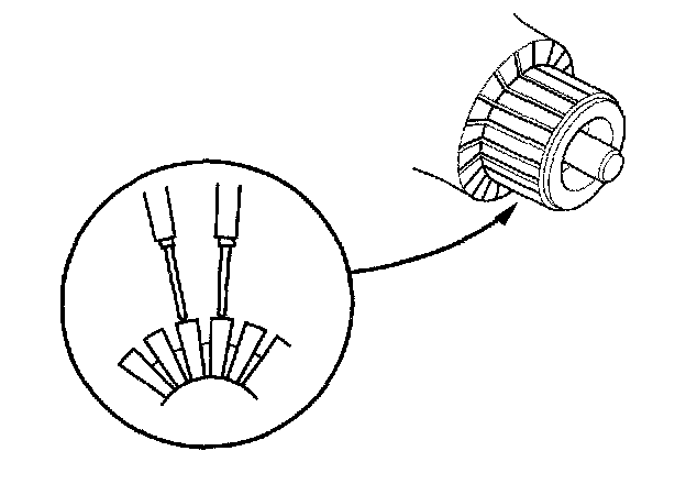 8. Check for continuity between the segments of the commutator. If there is an open circuit between any segments, replace the armature.