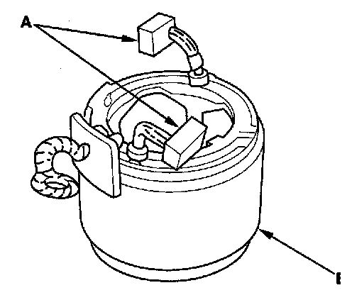 13. Check for continuity between each brush (A) and the armature housing (B). If there is continuity, replace the armature housing.