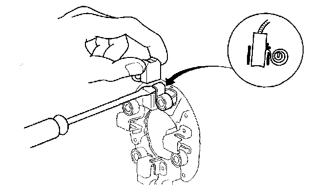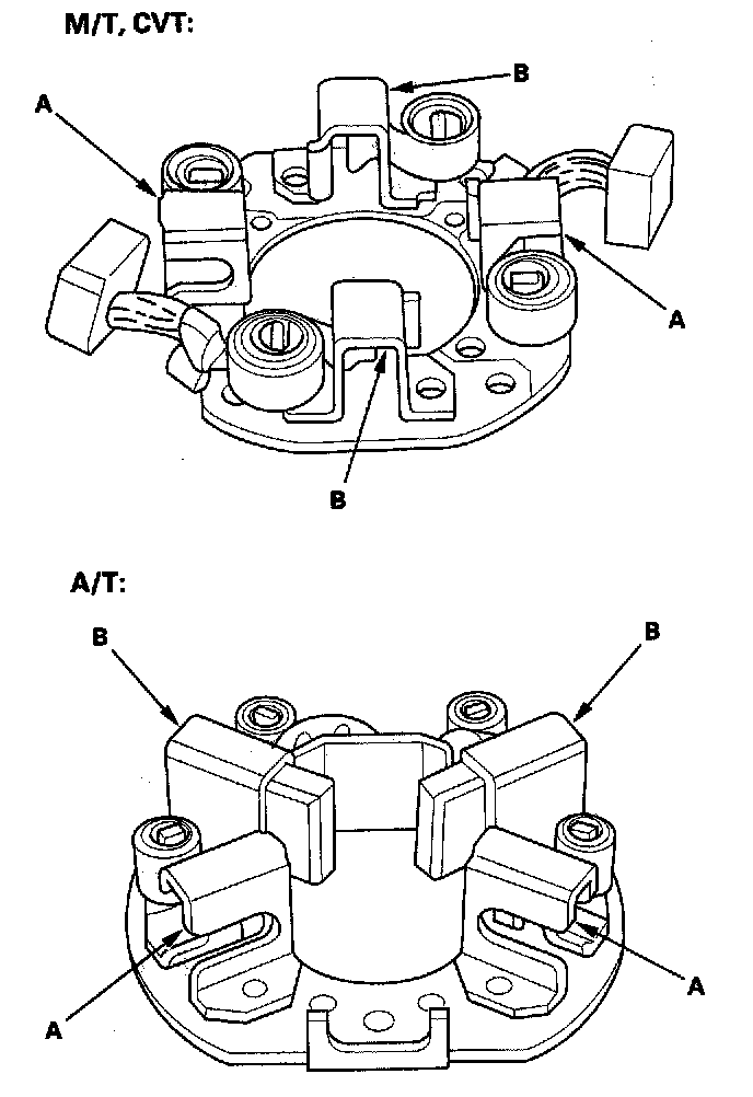 14. Check for continuity between the (+) brush holders (A) and (-) brush holders (B). If there is no continuity, replace the brush holder assembly.