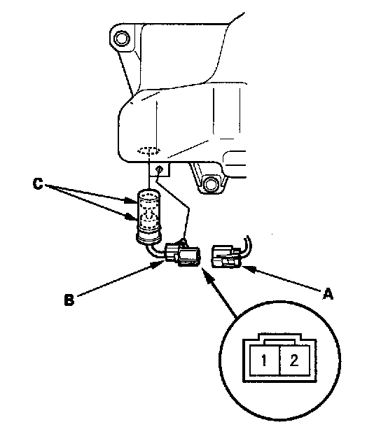 4. Check for continuity between the No. 1 and No. 2 terminals in each float position (C).