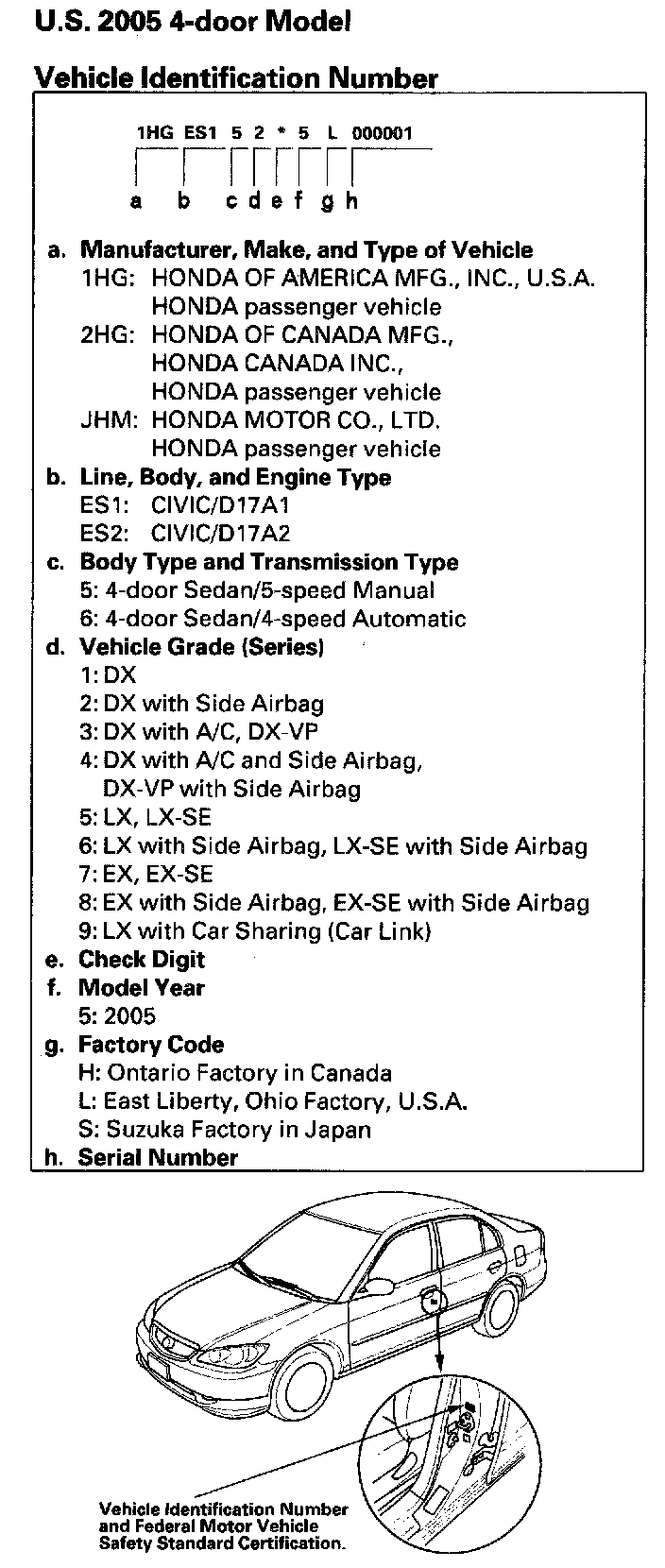 Vehicle Identification Number, U.S. 2005 4-door Model:
