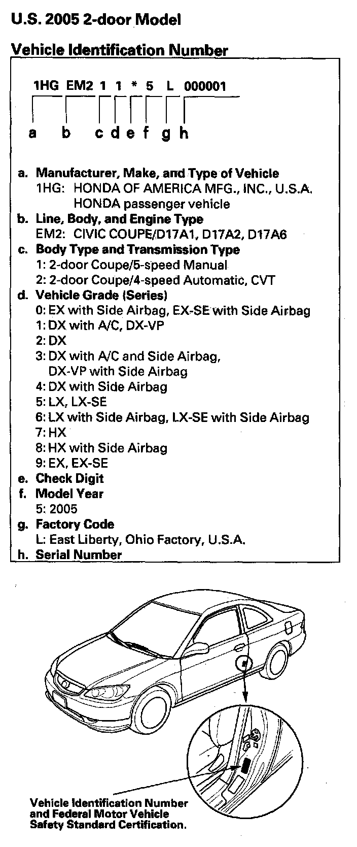 Vehicle Identification Number, U.S. 2005 2-door Model: