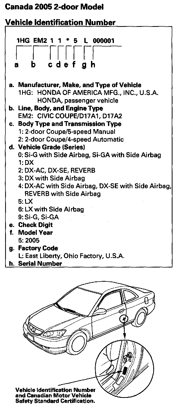 Vehicle Identification Number, Canada 2005 2-door Model: