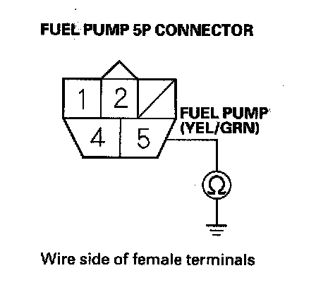 31. Check for continuity between fuel pump 5P connector terminal No.5 and body ground.