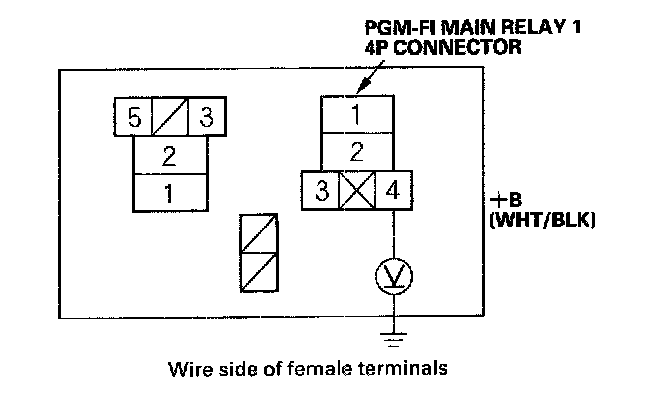 40. Measure voltage between PGM-FI main relay 1 4P connector terminal No.4 and body ground.