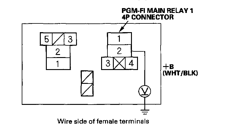 19. Disconnect each of the components or connectors below one at a time, and check for continuity between PGM-FI main relay 1 4P connector terminal No.1 and body ground.