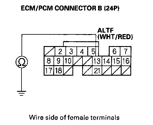 12. Check for continuity between body ground and ECM/PCM connector terminal B13.