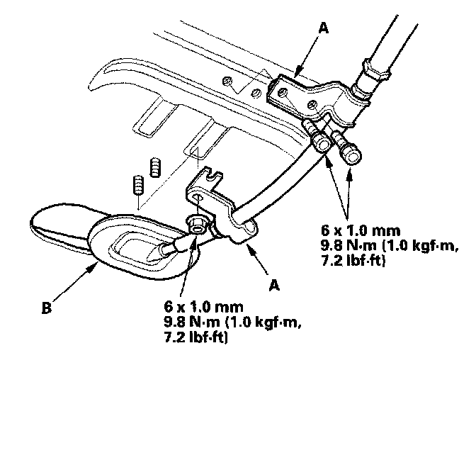 7. Remove the shift cable guide brackets (A) and grommet (B).