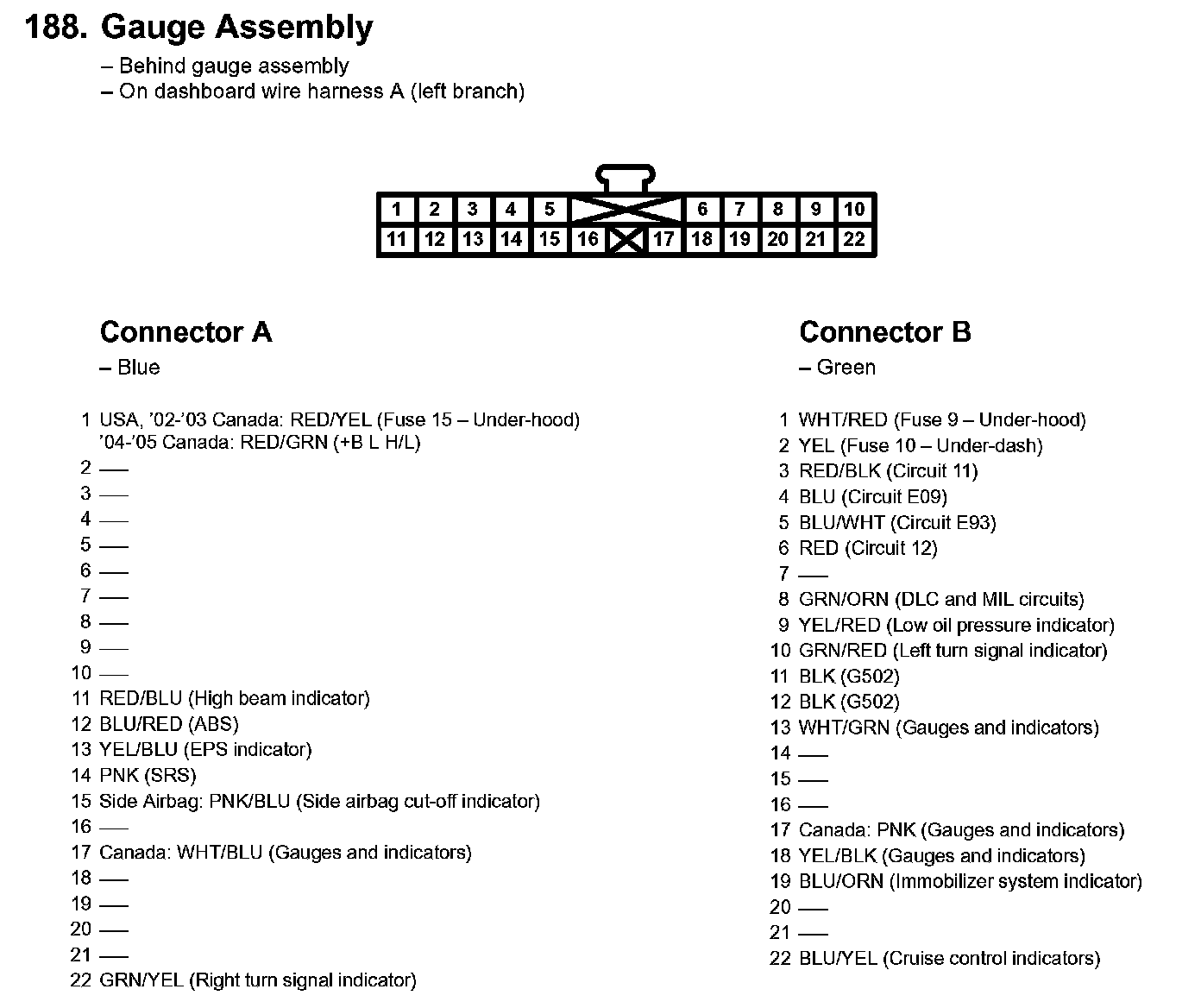 Gauges - Component Location Index: