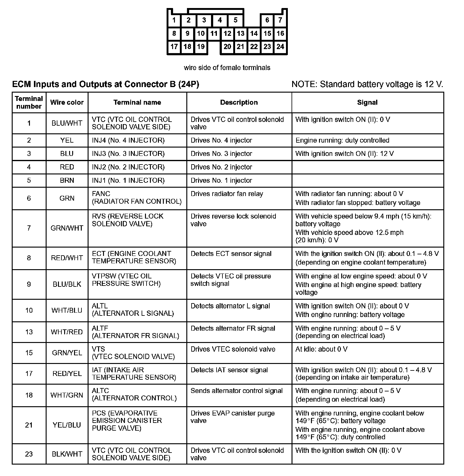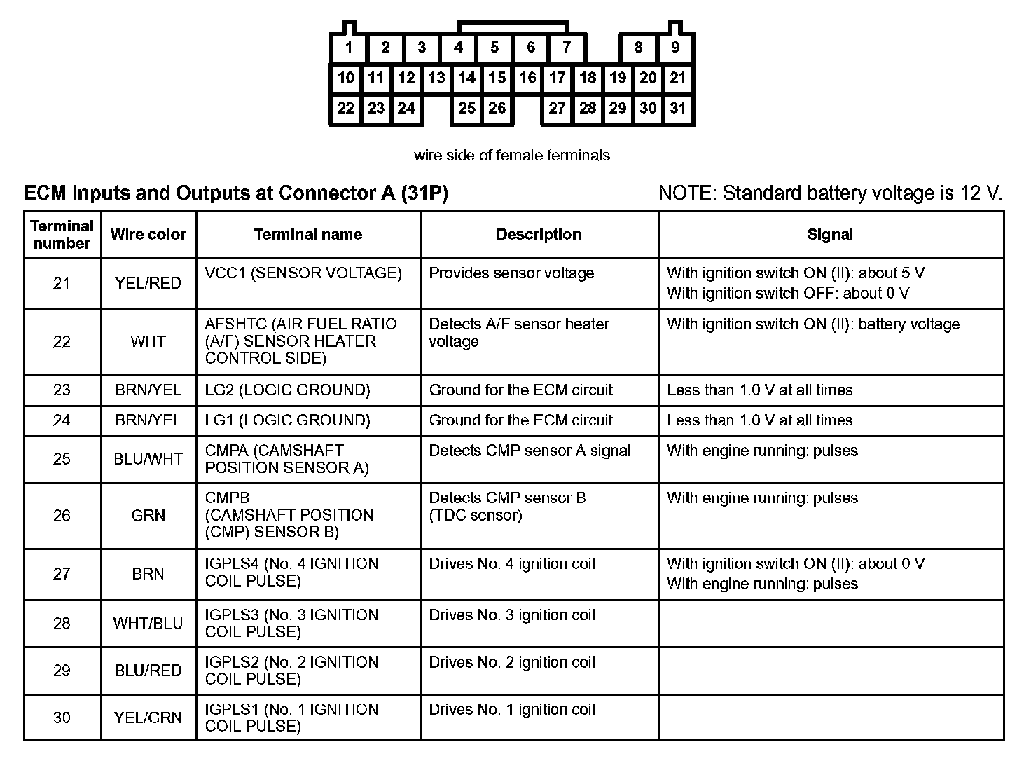 ECM Inputs And Outputs At Connector A (31P) Part 1: