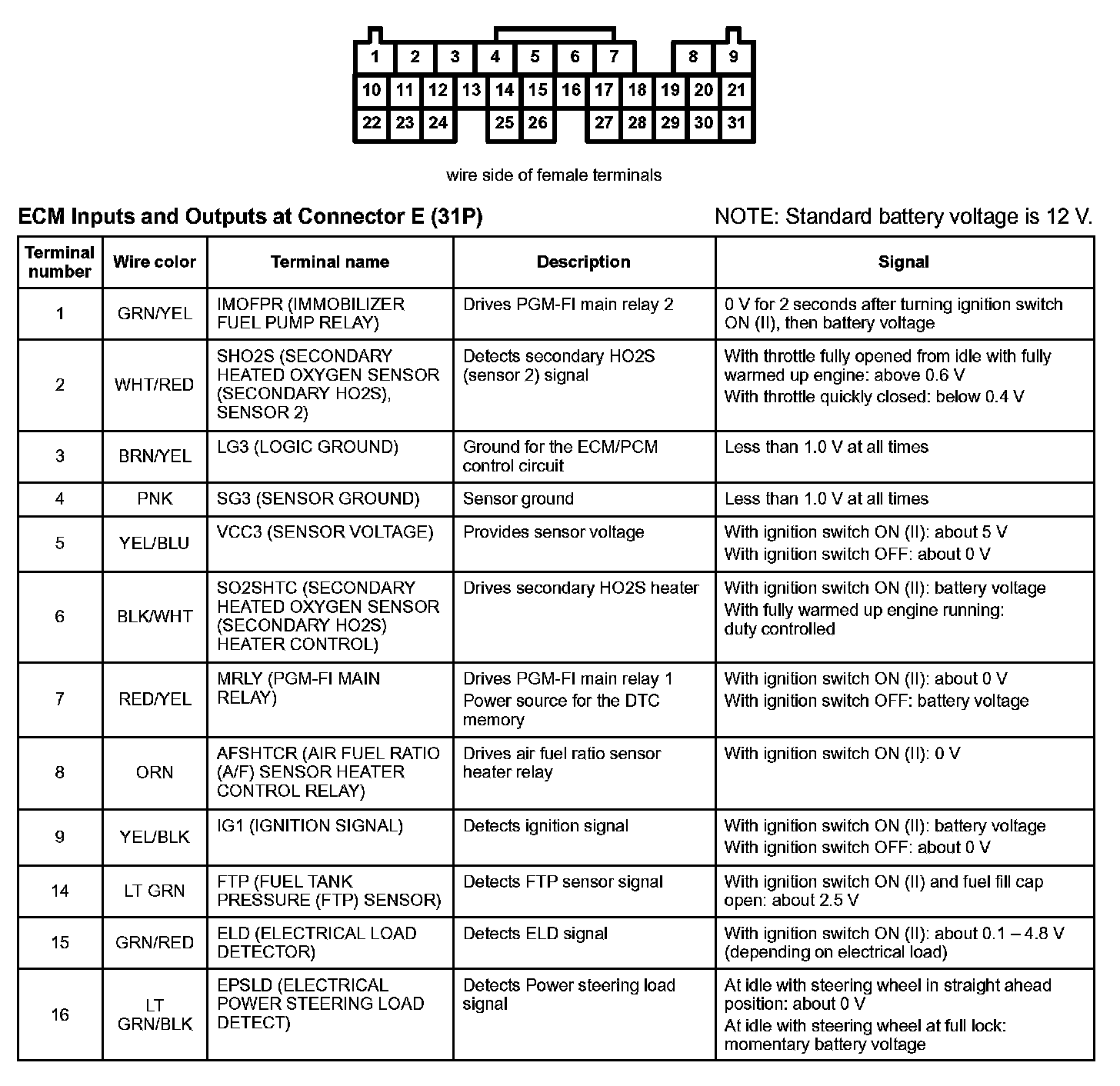 ECM Inputs And Outputs At Connectors E (31P) Part 2: