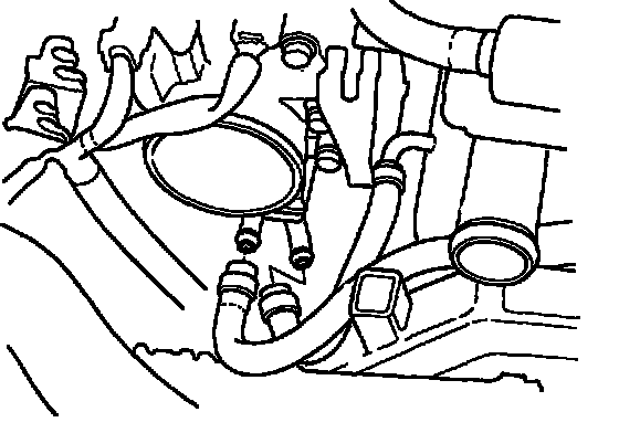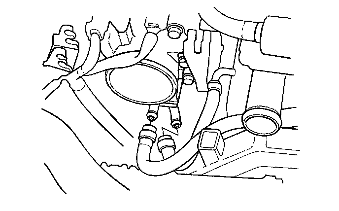 5. Be prepared to catch and clean up spilled coolant. Remove the water bypass hoses, then plug the water bypass hoses.