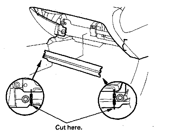 4. Cut the plastic cross brace in the glove box opening with diagonal cutters in the area shown. Remove and discard the plastic cross brace.