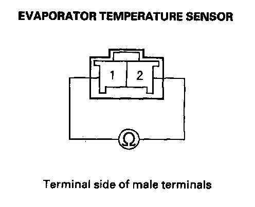 Evaporator Temperature Sensor Test1. Dip the sensor in ice water, and measure the resistance between its terminals.
