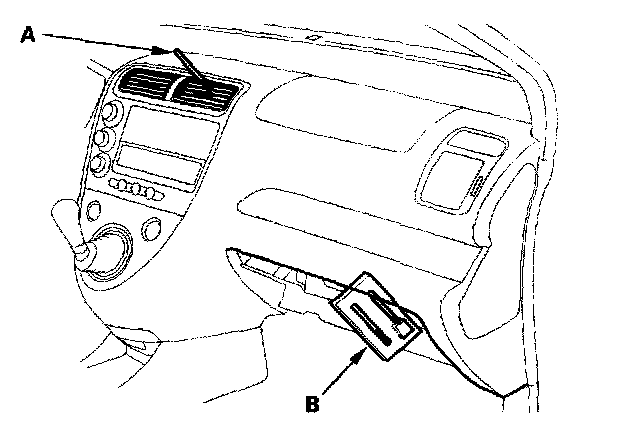 4. Insert a thermometer (A) in the center vent, and place another thermometer (B) near the blower unit.