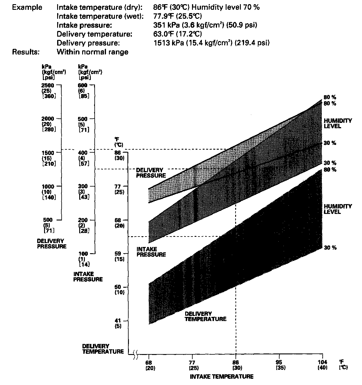 - Mark the intake temperature (ambient air temperature) along the bottom line.