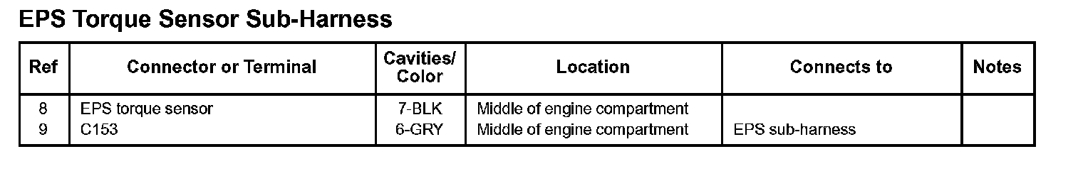 EPS Torque Sensor Sub-Harness:
