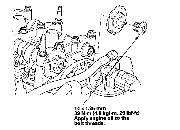 2. Hold the camshaft with an open-end wrench, then loosen the bolt.