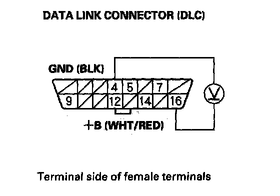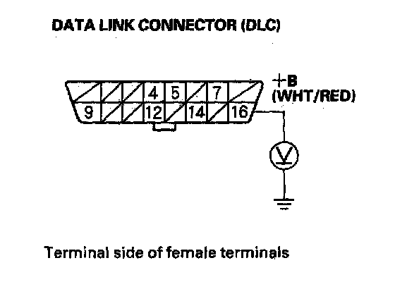 2. Measure voltage between DLC terminals No.4 and No.16.