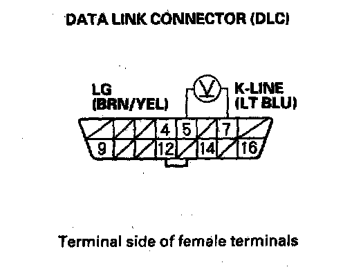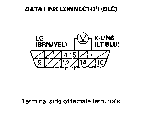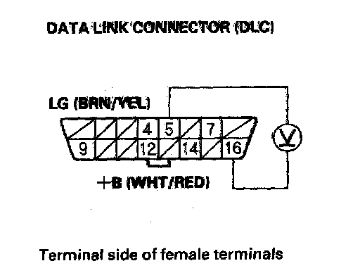13. Measure voltage between DLC terminals No.5 and No.7.