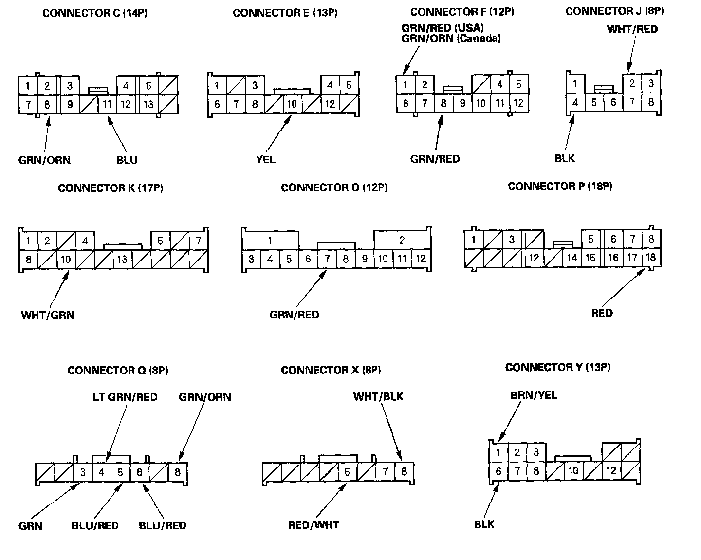 4. Reconnect the connectors to the under-dash fuse/relay box, turn the ignition switch ON (II) to keep the system awake and make sure these input tests at the appropriate connectors on the under-dash fuse/relay box.