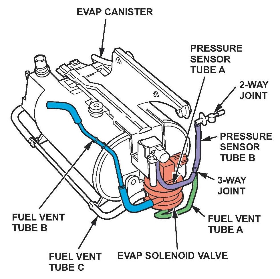 4. Attach the tubes and the joint from the kit onto the new EVAP solenoid valve as shown.