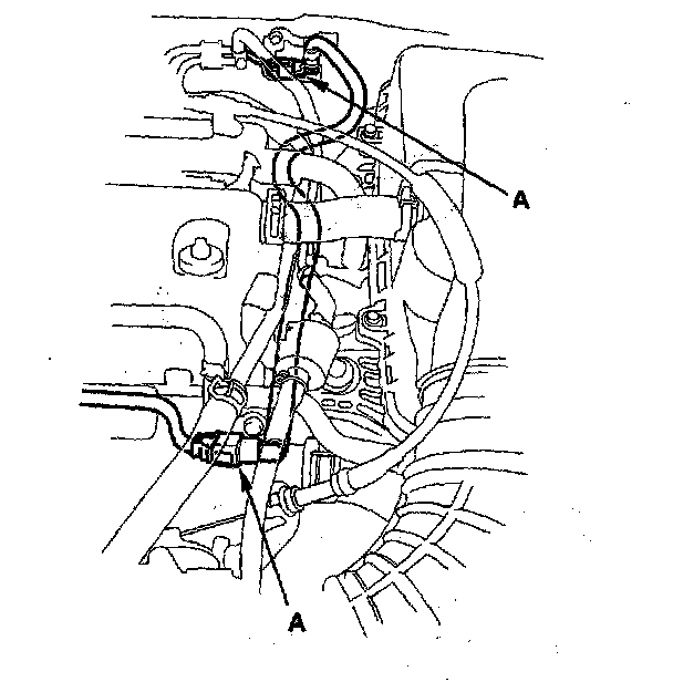 6. Reconnect the negative cable to the battery, and turn the ignition switch ON (II). The fuel pump will run for about 2 seconds, and fuel pressure will rise. Repeat 2 or 3 times, and check that there are no fuel leaks.