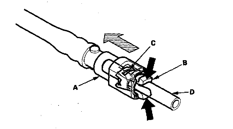 3. Before connecting a new fuel tube/quick-connect fitting assembly (A), remove the old retainer from the mating line.