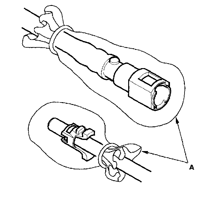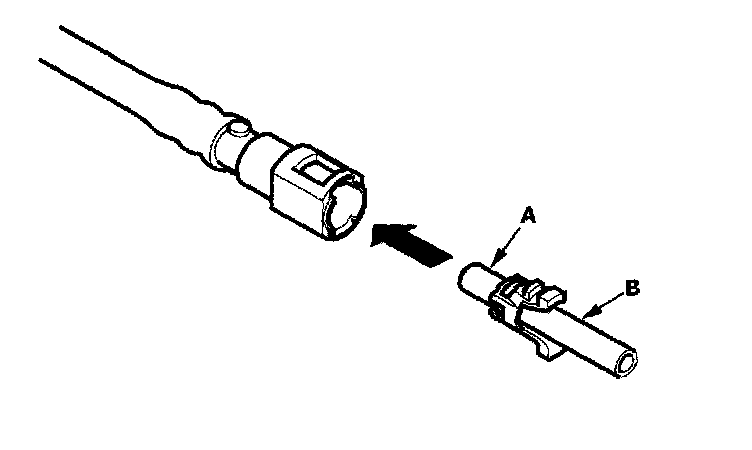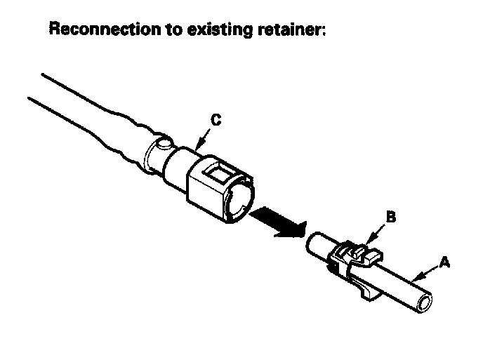 2. Insert a new retainer (A) into the connector (B) if the retainer is damaged, or after: