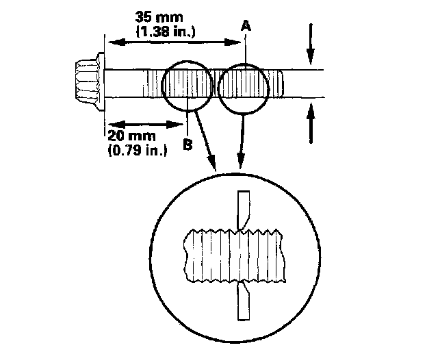 If either diameter is less than 10.6 mm (0.42 inch), replace the cylinder head bolt.