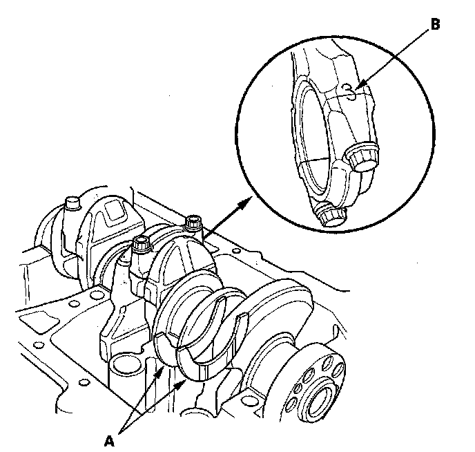 Measure the diameter of each cylinder head bolt at point A and point B.