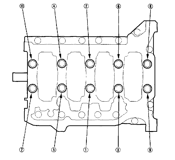 Tighten the cylinder head bolts in sequence to 39 Nm (4.0 kgf-cm, 29 ft. lbs.).